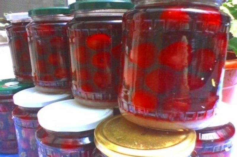 ciresele spalate se pune in borcan se adauga zaharul se completeaza cu apa se capseaza se invelesc in hartie si se pune la fiert la bain marine 30 min din momentul in care apa in vas incepe sa fiarba.Se lasa sa se raceasca in vasul in care au fost fierte.