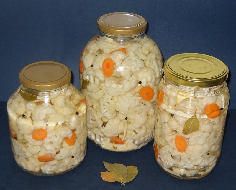 Se toarna fierbinte cu polonicul peste conopida, in borcane.Se pun si frunzele de dafin si piperul in borcane.