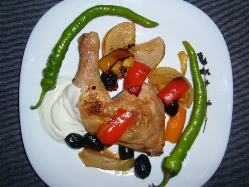 Am lasat puiul cam 50 de minute. Se serveste cu smantana.