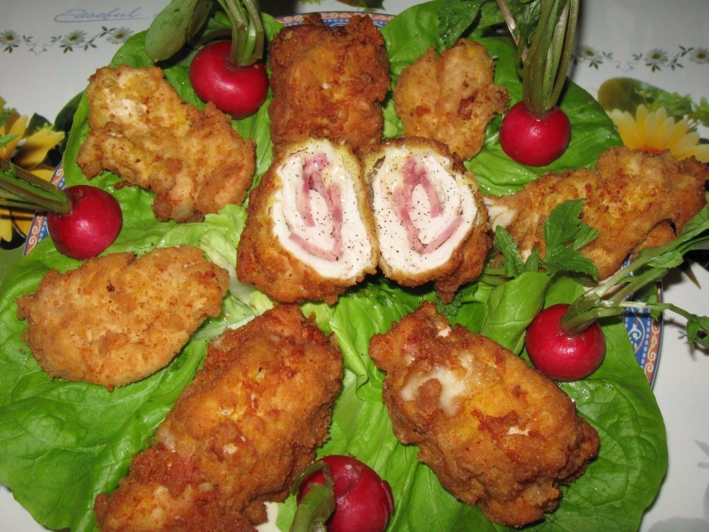Sugestie de servire: se pot aseza pe un platou, cu cateva felii de salata verde si se poate servi cu garnitura de cartofi prajiti sau piure cu sos alb.