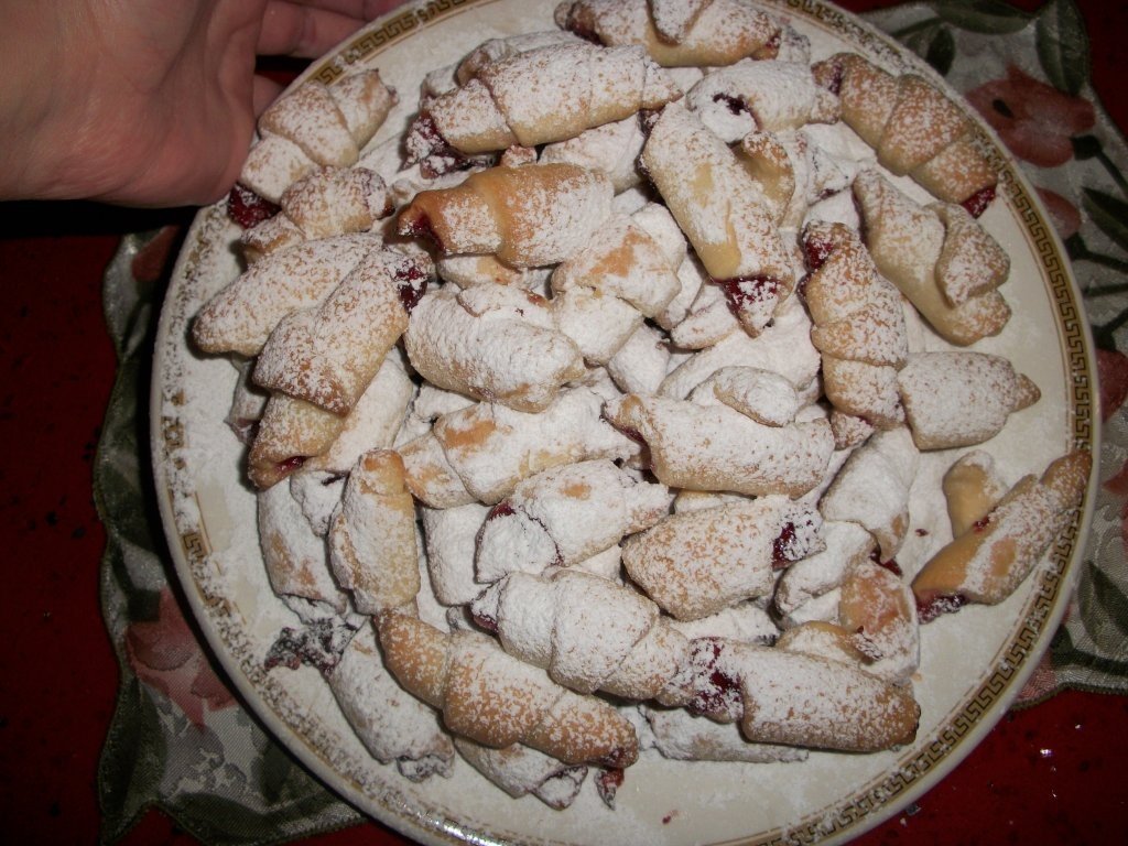 Se cerne faina,se adauga untura topita,laptele ,coaja si zeama de lamaie,zahar dupa gust,un praf de sare,un pic de drojdie muiata in apa calduta,un plic de zahar vanilinat.Se amesteca totul,se framanta bine(aluatul sa nu fie nici prea tare nici prea moale)dupa care se lasa jumatate de ora,o ora in frgider,dupa care se scoate si se incep a face cornuletele,dupa care se da la cuptorul preincalzit pt.5-10 min.nu stiu sa va spun cum le-am facut ca nu prea au iesit la aspect dar gustul a iesit delicios.Eu le-am umplut cu dulceata de cirese dar se pot umple si cu nuca cu zahar sau cu orice dulceata doriti,inca ceva nu puneti multa dulceata pt ca va curge in tava.