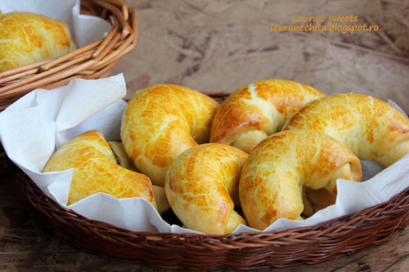 Am spart un ou si am separat albusul de galbenus. Am uns cornurile intai cu galbenus, am asteptat sa se usuce, apoi le-am uns cu albus si le-am pus la copt in cuptorul preincins, la foc mediu, cam 20 minute.
