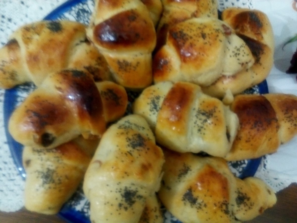 Aceste cornuri fiind din aluat de cozonac se pot umplute si cu mac, magiun, branza dulce sau orice dorim noi.