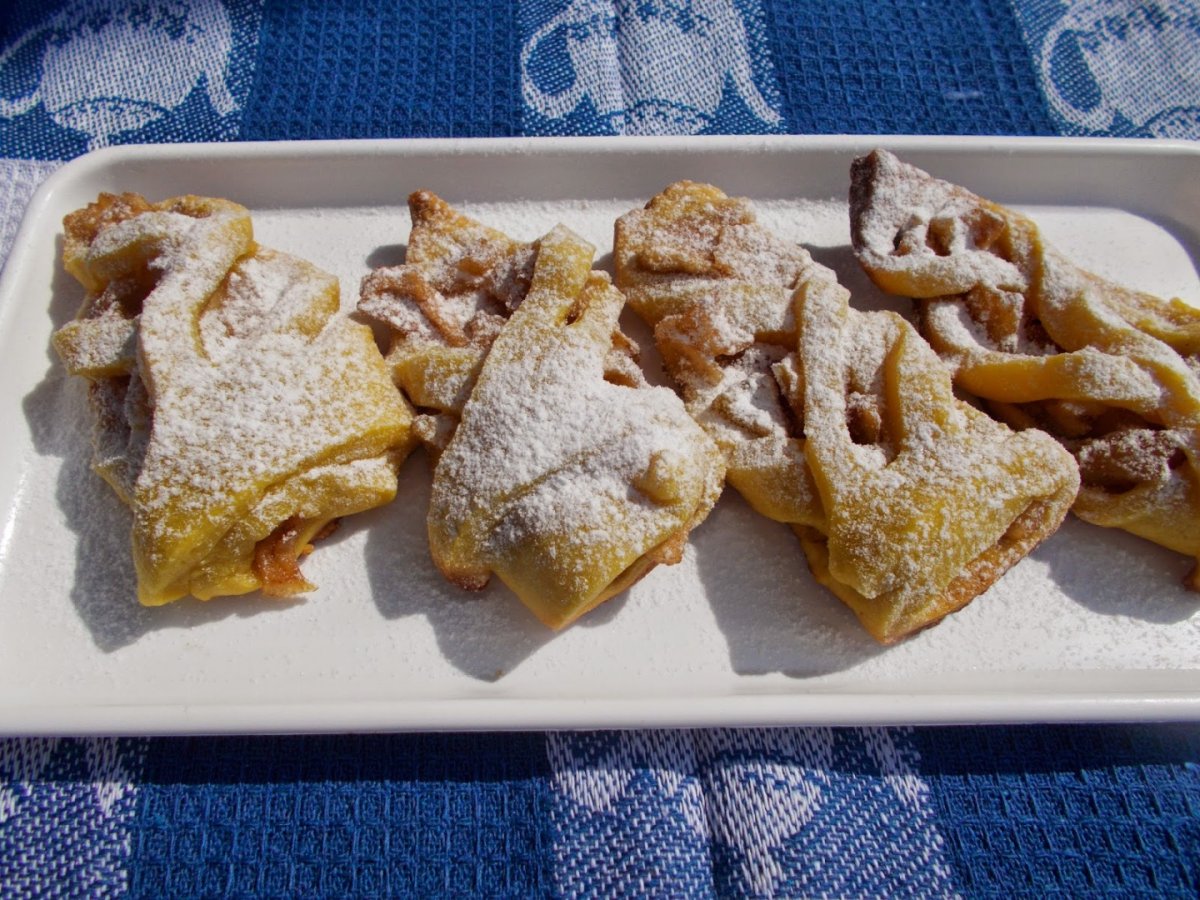 Alautul se intinde in foi pe care le taiem in triunghi cu laturile de aprox 12 cm.Crestam apoi pe langa 2 dintre laturi de 2 ori insa nu pana in varful triunghiului.Pe mijloc asezam o lingura de mere si apoi intoarcem cele 2 colturi unul peste altul pentru acoperi umplutura.Asezam cornurile in tava de copt si le dam la cuptor 35 min sau pana se coc.