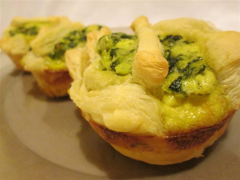 Cosulete cu spanac si branza.Lasam aluatul sa se decongeleze.Tocam rondelele de spanac congelat si le punem pe foc impreuna cu untul.
