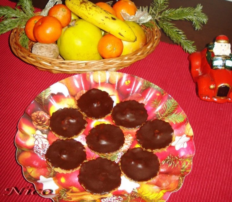 Purcedem la umplerea cosuletelor. In fiecare cosulet, punem putin gem de coacaze si cu acesta ungem peretii cosuletului. Apoi in fiecare cosulet punem una sau doua visine din compot fara samburi, si la final umplem cu crema preparata. Se glazureaza cu glazura de ciocolata Dr. Oetker sau cu ciocolata de menaj topita amestecata cu putina margarina sau unt pentru a nu fi foarte groasa. Altfel nu se va putea intinde frumos deasupra cremei. Se decoreaza cu un sfert de nuca. La mine lipseste nuca de deasupra pentru ca nu am mai avut, iar gemul de coacaze a fost asa putin ca i se simtea doar mirosul . De asemenea nu am avut destul, iar cu alt gem nu am incercat. Trebuie sa folosim un gem care este putin acrisor si nu foarte dulce.