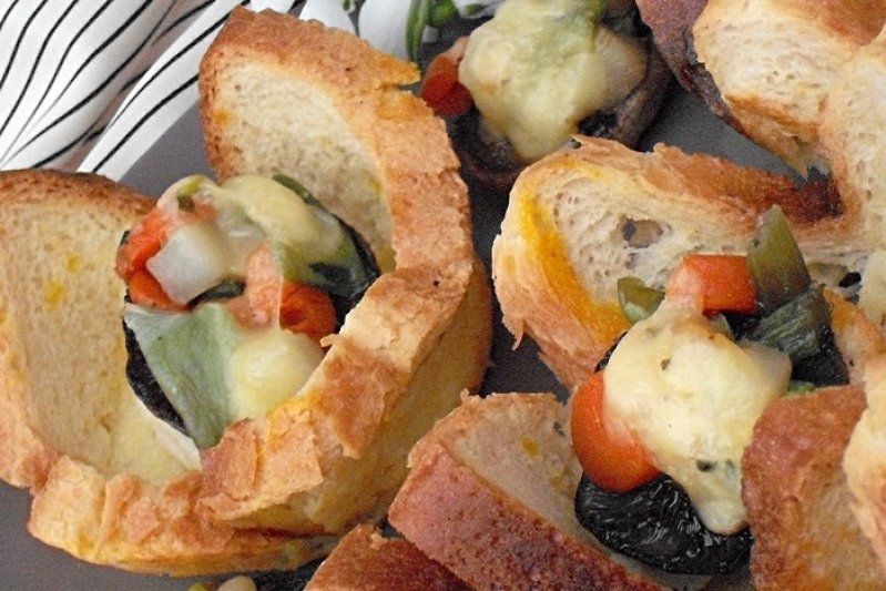 Se fierb legumele in apa cu sare ,apoi se scurg bine si se pune cate o lingura in fiecare palariuta,se pune fasii de cascaval deasupra si se dau la cuptor,cca 30 de minute.