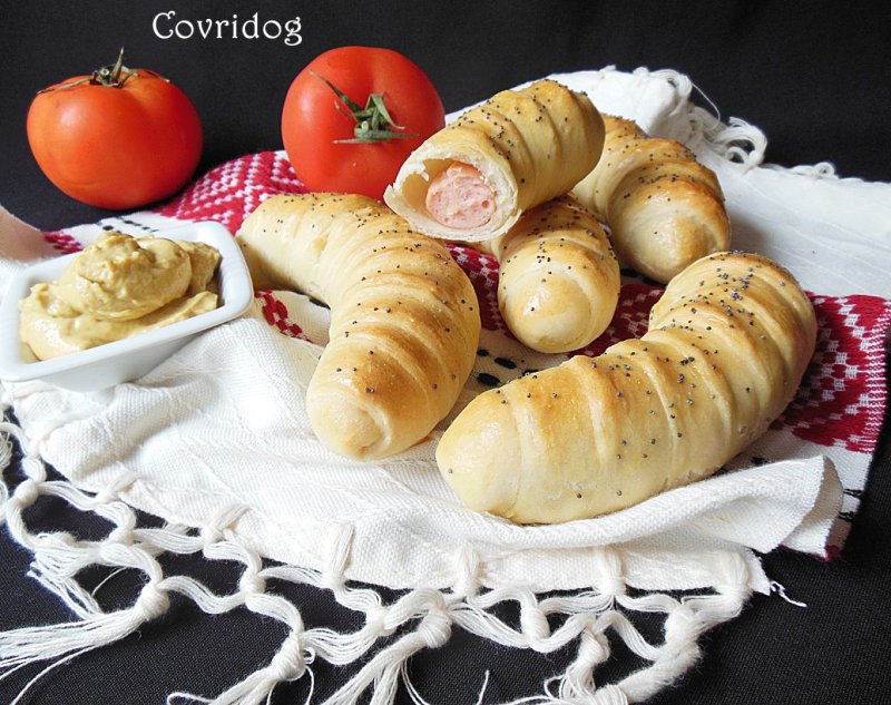 Introducem tava in cuptorul incins, lasam covridogii pana sunt rumeniti frumos.