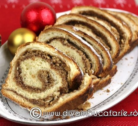 Pe o planseta unsa cu ulei sau unt topit intindem aluatul. Peste acesta vom preasara nuca amestecata cu nesquik. Rulam apoi aluatul si presam marginile pentru a nu iesi nuca. Punem cozonacul in tava si il lasam inca 10-15 minute sa creasca. Dam cozonacii la cuptorul preancalzit la 180°C pentru 45 minute. Cand ii scoatem din cuptor ii ungem cu ou si pudram cu zahar.