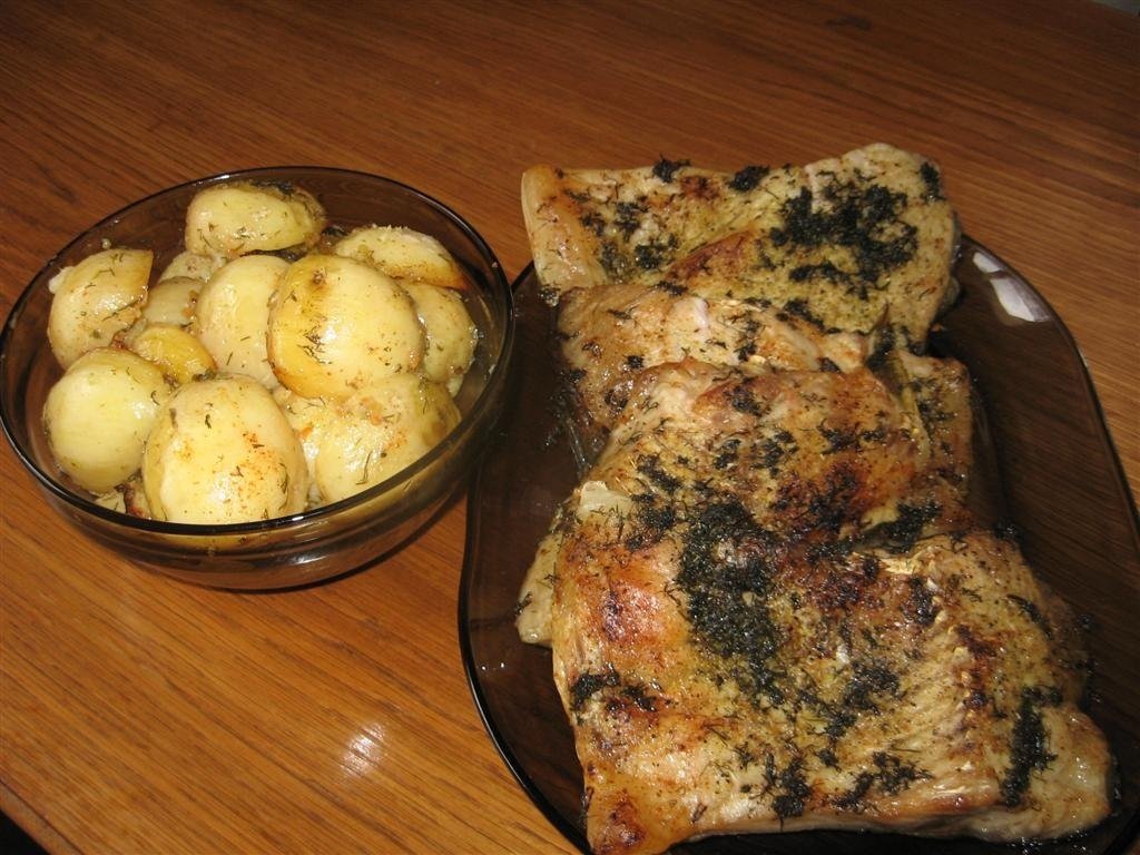 Am fost in piata si carttofii noi erau atit de frumosi, galbeni aurii incit nu am rezistat si am cumparat, gindindu-ma ca mai am in congelator 4 bucati frumoase de crap si ar merge de minune cu cartofii noi si cu mult marar verde prospat.