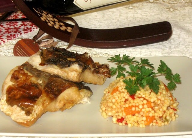 Servim cald alaturi de o garnitura(eu am ales cus-cus cu legume) si un pahar cu vin.