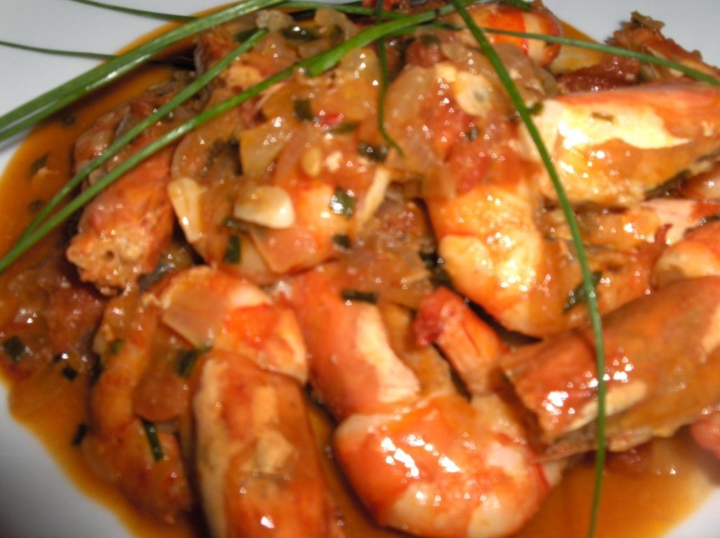 1)Creveti se condimenteazã cu piper alb si sare finã, se prãjesc in unt.