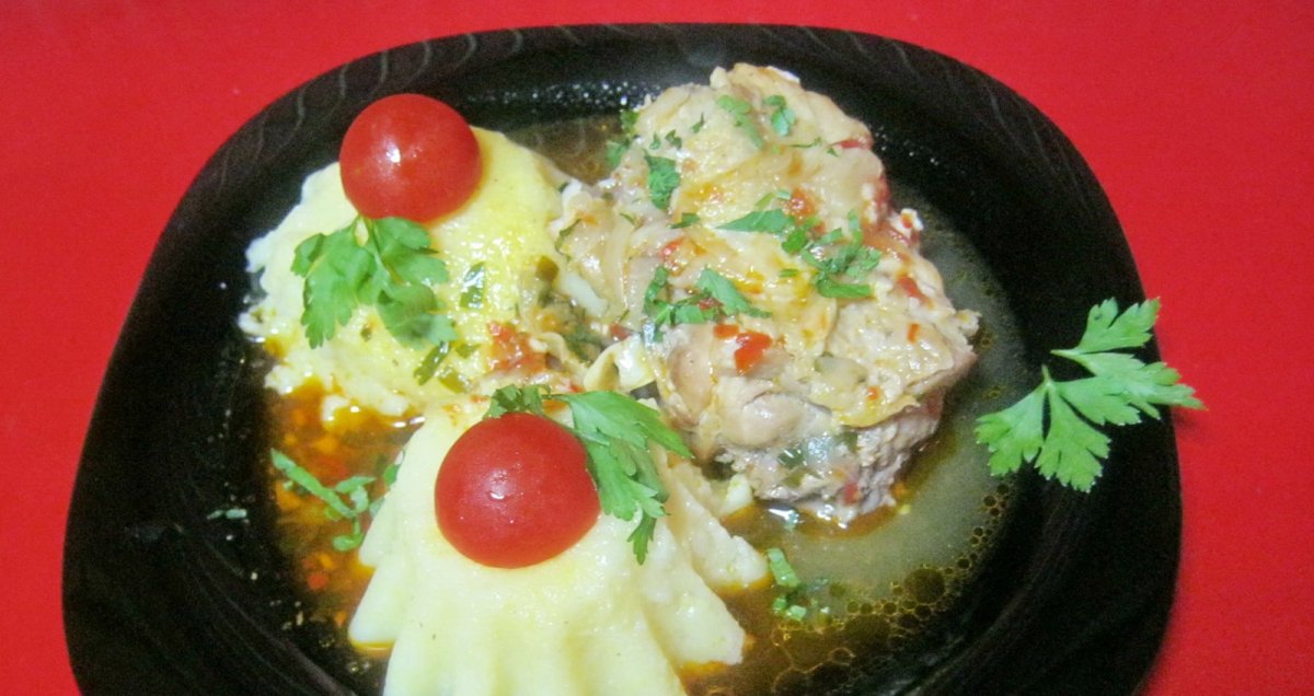 Ceapa curatata o tocam marunt si o rumenim in untura ramasa, apoi adaugam carnea prajita si usturoiul curatat si taiat feliute.Asezonam cu toate condimentele, punem peste vinul, amestecam sa se omogenizeze si deasupra punem feliile de rosii si ardei.
