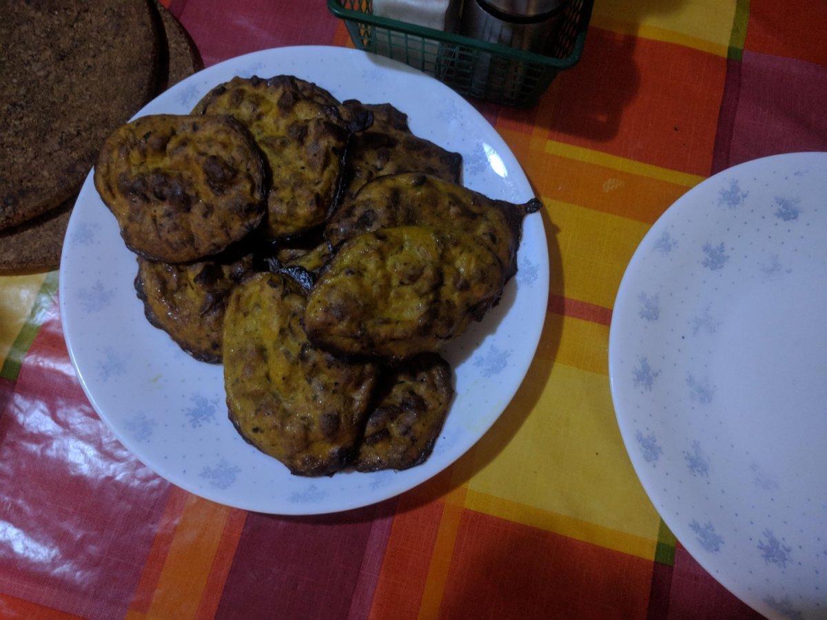 Intr-o cratita amestec bostanul cu ceapa si ouale este bine cu blender mot ptr ca desface bine bostanul, dau la gust cu sare si piper si adaug si 2-3 linguri de faina. Amestec bine continutul si adaug si putina nucsoara.