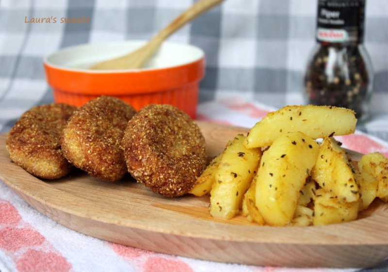 Crochetele crocante se servesc cu garnitura de cartofi si sos delicios de iaurt!