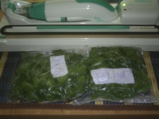 Se curata crengutele subtiri de telina dupa tulpinile groase ,se spala,se zvanta,apoi se fac buchetele si se ambaleaza in pungute sau cutiute din material plastic . Pungile se leaga bine sau se videaza cu aparatul de vidat si asa vom avea supite,creme si ciorbite aromate toata iarna….