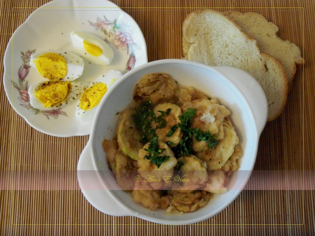 La acest fel de mancare, eu servesc si mujdei de usturoi precum si cate un ou fiert per portie.