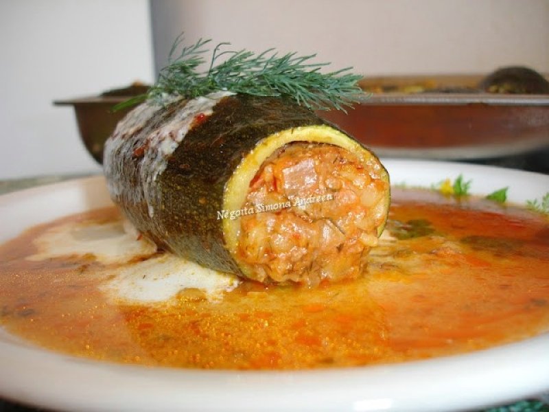 Ceapa se caleste impreuna cu usturoiul, se adauga morcovul apoi carnea, condimentele, pasta de rosii, mararul si la urma couccoucul oparit ca la umplutura 1. Se potriveste umplutura de sare si se umplu dovleceii. Se pregatesc ca mai sus si se servesc cu sana sau lapte batut si marar proaspat.