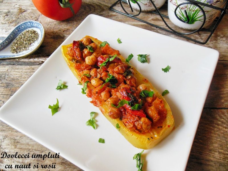 Descoperim vasul si mai lasam circa 15 minute dovleceii in cuptor.