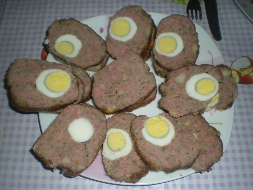 Carnea tocata se pune intr-un castron mai mare si o condimentam cu sare,adaugam 2 oua,painea inmuiata in lapte si bine stoarsa,parmezanul,usturoiul si patrunjelul sau mararul tocat,piper dupa gust.Amestecam bine aceasta compozitie,o acoperim cu folie transparenta si o dam la frigider timp de 30 minute.Intre timp fierbem 3 oua timp de 10 minute,si le lasam la racit.Pregatim o tava de cozonac cu folie de cuptor unsa cu putin unt,si incalzim cuptorul la 200 °.Asezam pe o folie de aluminiu sau transparenta compozitia de carne tocata,punem cele 3 oua pe orizontal ,unul dupa altul,si formam un salam cu ajutorul foliei,cu grija ca ouale sa fie bine incrporate.Ii dam bine forma unui salam si apoi scoatem cu grija folia.Asezam drobul in tava si dam la cuptor cca 1 h,la 180 grade.Cand este gata,il lasam sa se raceasca vreo 2 ore ca sa-l putem taia felii.Pofta buna!