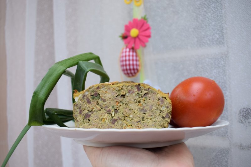 Pregatim o tava de chec de 25 cm lungime pe care o ungem foarte bine cu unt sau ulei. Asezam si aranjam frumos compozitia in tava.