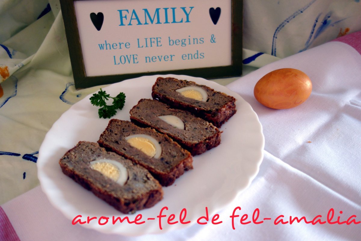 Peste ea asezi ouale fierte taiate in jumatate pe lungime si apoi acoperi cu restul de compozitie.