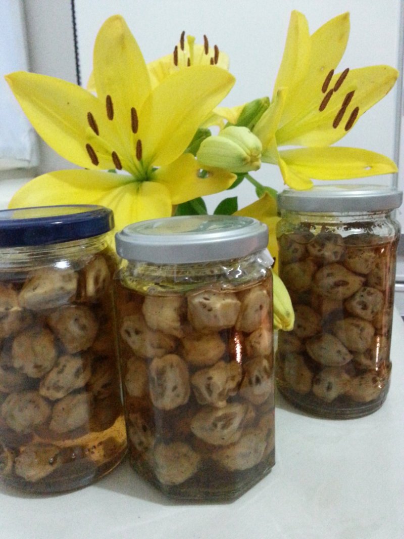 Se vor folosi nuci crude, care au inca partea lemnoasa. Se va pregati un vas cu apa rece si suc de lamaie. Se ia fiecare nuca si se curata pana se ajunge la miezul alb. Deoarece se oxideaza repede, va fi pusa in vasul cu apa si lamaie imediat ce a fost curatata. Dupa ce au fost toate curatate, se schimba apa si se dau la frigider timp de 12 ore. Nucile se clatesc de mai multe ori si de fiecare data se adauga suc de lamaie.