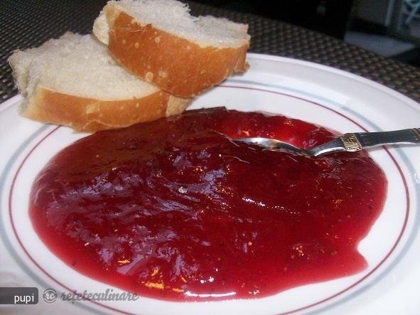 Cand se formeaza spuma deasupra, se scoate cu o lingura. Cand s-a ingrosat, dulceata este gata. Procesul de fierbere cred ca este cam jumatate de ora, nu stiu exact, ca nu m-am uitat la ceas, dar se face rapid.