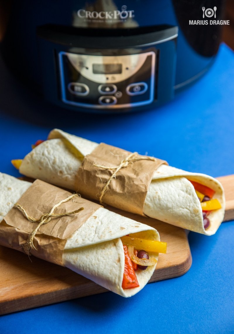 3. Cand este gata incorporam fasolea rosie si impartim compozitia pe tortilla incalzite (sau nu), rulam si gata.