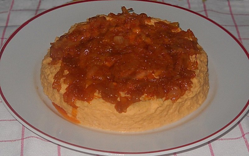 Cat timp se raceste fasolea, curatam ceapa si o taiem solzisori .O prajim in ulei apoi adaugam pasta de tomate.Condimentam cu boia, sare si piper. Punem ceapa calita intr-o stercuratoare. Fasolea o punem intr-un castron si o mixam cu jumatate din ceapa calita si uleiul scurs. Condimentam cu sare si piper. O servim rece cu restul de ceapa pe deasupra. Pofta buna!