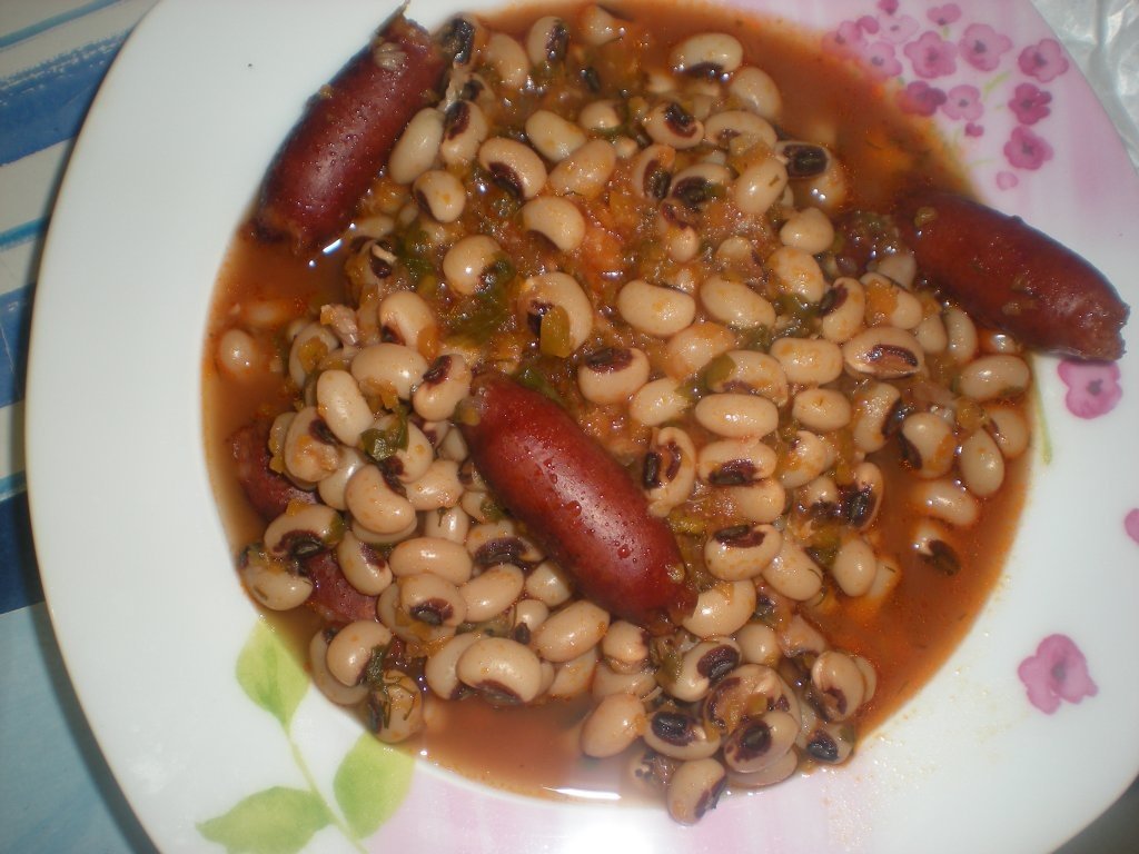 Se pune fasolea la inmuiat cu o seara inainte de a fi pregatita.Se curata si se spala bine legumele,dupa care se taie marunt si se calesc cu 2 linguri de ulei.Se adauga carnatii si se calesc impreuna cu legumele.Se adauga bulionul, fasolea ,si apa cat cuprinde.Se da focul la mic si se acopera cu un capac,lasand sa fiarba 30 minute.Daca scade apa puteti adauga o cana de apa calda.Cand fasolea este aproape fiarta se adauga sare ,un pic de piper macinat si patrunjel verde taiat marunt.Pofta buna!