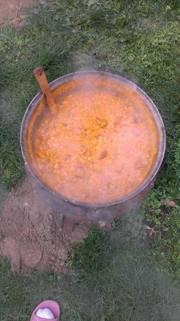 Fasolea se alege si se pune la umflat cu o zi inainte. scurgem apa si punem fasolea la fiert. Cand a dat in clocot schimbam apa de 2-3 ori (procedeu obligatoriu). Separat, curatam ceapa si o taiem marunt, iar morcovul il dam la prin razatoare. Calim ceapa si morcovul in 3 linguri de ulei, adaugam ciolanul si cand ceapa s-a inmuiat, adaugam bulionul. Incercam fasolea si daca e aproape fiarta, adaugam legumele cu ciolanul si lasam sa fiarba pana se leaga zeama. La final, punem foile de dafin si condimentam dupa gust.
