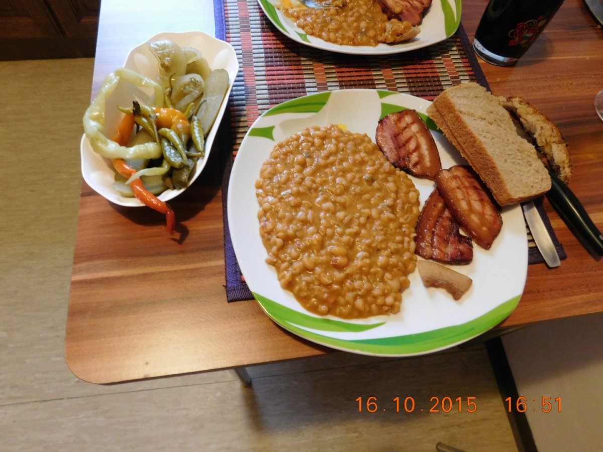 1) cu fasole alba: se inmoaie fasolea cu o seara inainte, se incalzeste untura ( sau uleiul ) se caleste ceapa si legumele se aduga boiaua si usturoiul trecut prin presa se stinge imediat ( dupa 1 -2 sec )cu putina apa, se aduga fasolea, majoranul, cimbrul si foaia de dafin, se sareaz si se pipareaza. Se fierbe la foc mic partial acoperit pana fasolea incepe sa se sparga si sosul devine cremos.