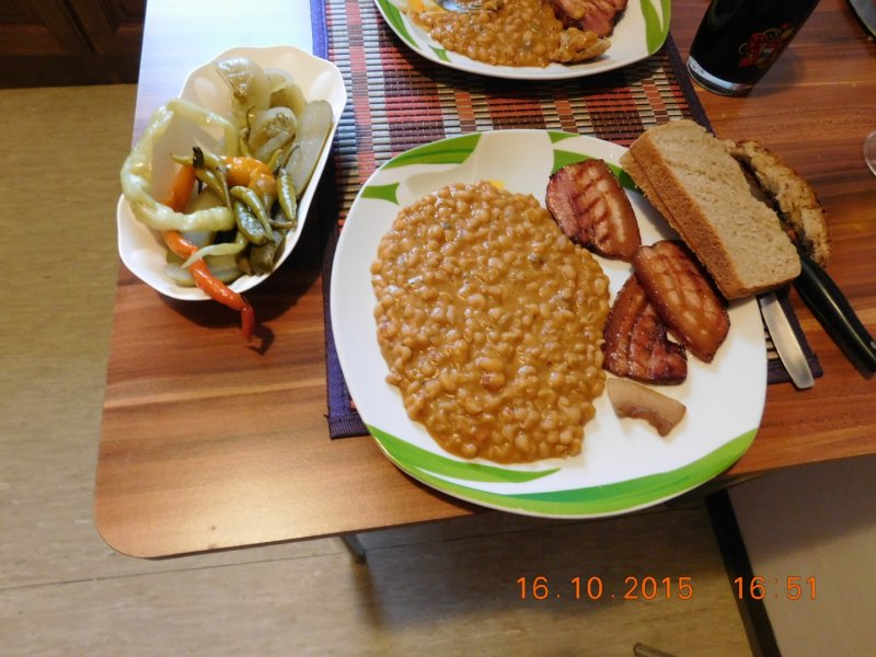 2) cu fasole din conserva: se caleste ceapa, se adauga boiaua si usturoiul trecut prin presa, se adauga fasolea, majoranul, si foaia de dafin. Se fierbe 30 - 40 min. Se serveste cu paine, muraturi si costita prajita.