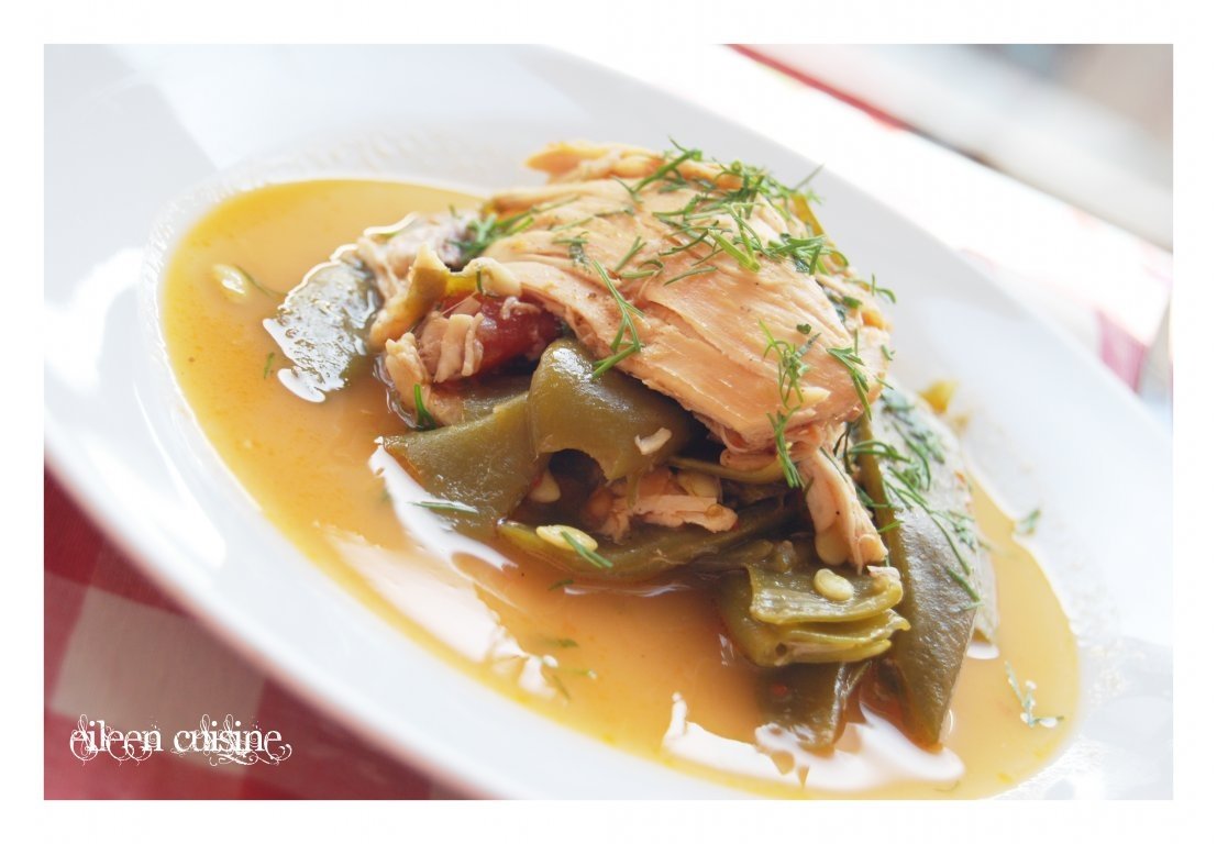 Incingem uleiul si prajim carnea presarata inainte cu sare si piper. Se scoate din oala si se adauga ceapa si ardeiul taiate marunt. Le prajim pentru cateva minute, apoi adaugam carnea si pastaile curatate si rupte in trei. Acoperim cu 4 cani de apa si adaugam boia, sare, piper. Lasam sa fiarba la foc mic cu capac pentru jumatate de ora, apoi luam capacul si lasam la foc mediu pana cand pastaile sunt fierte.