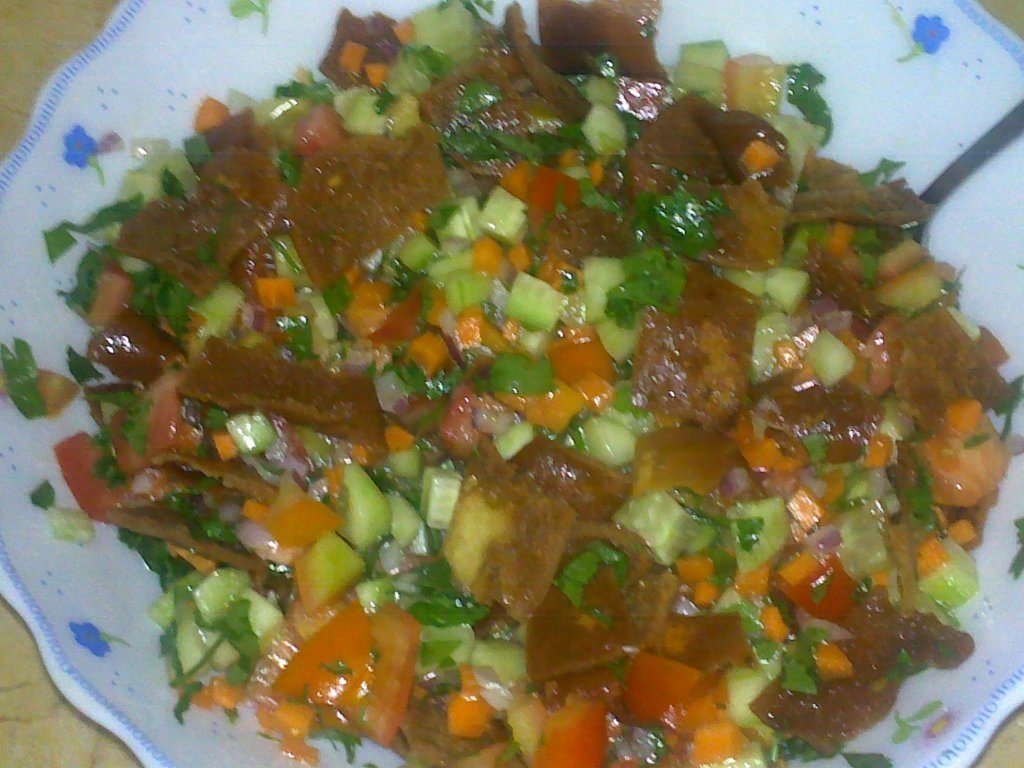 - Painea libaneza se taie patratele 1-2cm si se prajestein uleiul bine infierbintat, dupa ce se face de culoare galbenue unchisa (nu sa fie arsa) se pune pe servetel de bucatarie sa se scurga uleiul.