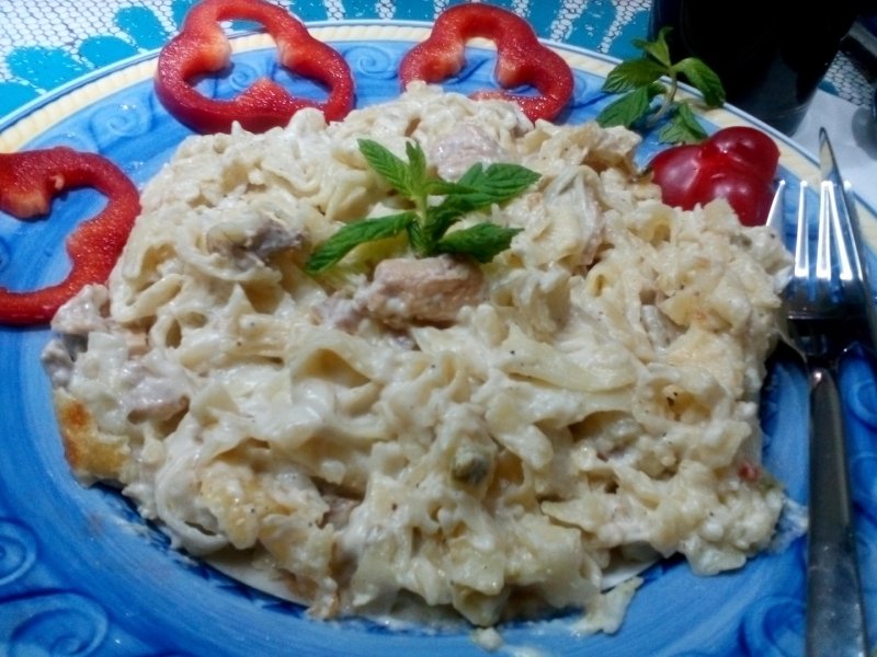 Trebuie sa recunostem ca este o mancare foarte gustoasa si satioasa, dar ce-i drept contine multe calorii.De aceea nu o repetam prea des, dar trebuie incercata, macar o data pe luna sau doua. Pastele fettuccine, eu una le consider mai gustoase decat celelalte paste, desigur ca le putem prepara si cu sos alb si carne, sau cu legume, cum ar fi broccoli.Eu am folosit crema Master Gourmet Chef, care se gaseste in comert si in Romania, ca de altfel si pastele fettuccine. Si acum sa incepem prepararea retetei noastre.