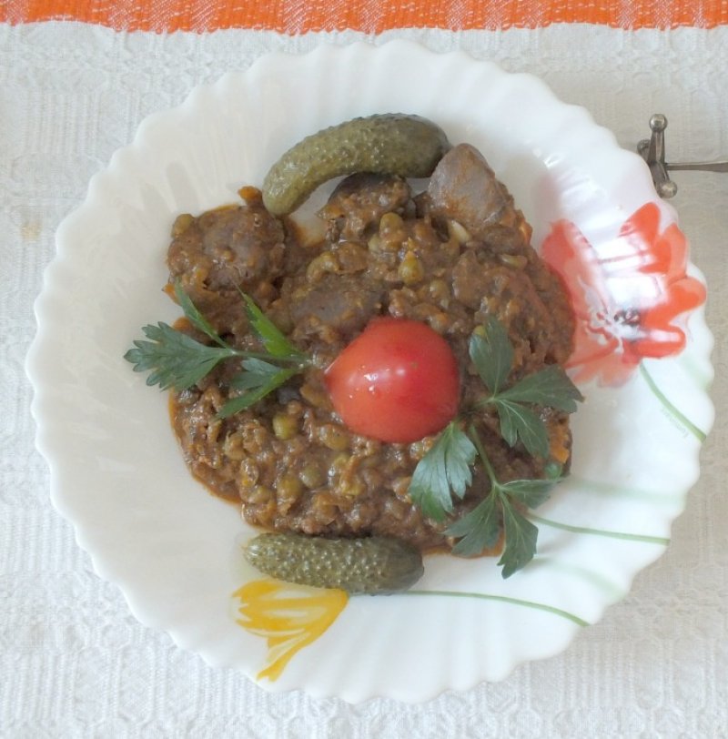 Se soteaza ficateii in uleiul incins, iar dupa ce se rumenesc, se adauga ceapa maruntita, usturoiul tocat fin si mazarea scursa si se soteaza.