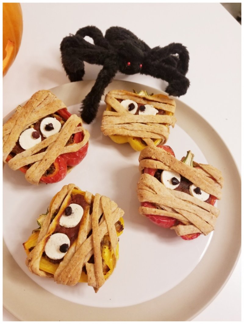 Infasuram extremitatile fiecarui ardei, lasand spatiu pentru ochi.
