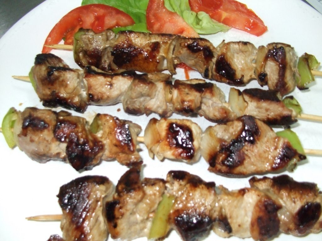 Se taie carnea cubulete la fel si legumele,apoi se pun pe betele de frigarui (un cub carne,unul ceapa,ardei)pana se uple batul.Se dau cu sare si piper si se prajesc pe gratarul incins.