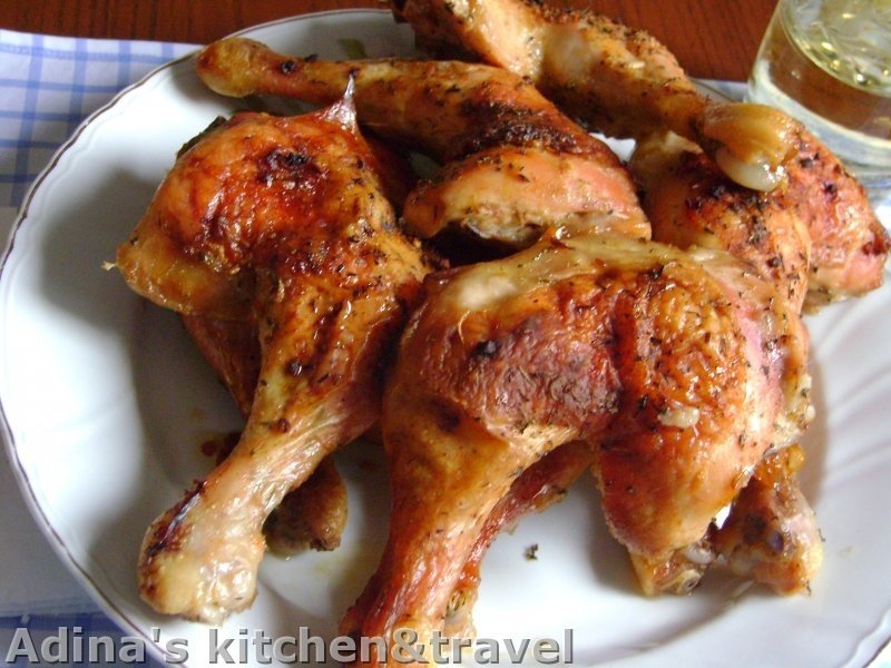Dupa ce carnea s-a rumenit frumos,scoatem bucatile pe un platou si servim alaturi de un pahar cu vin alb.