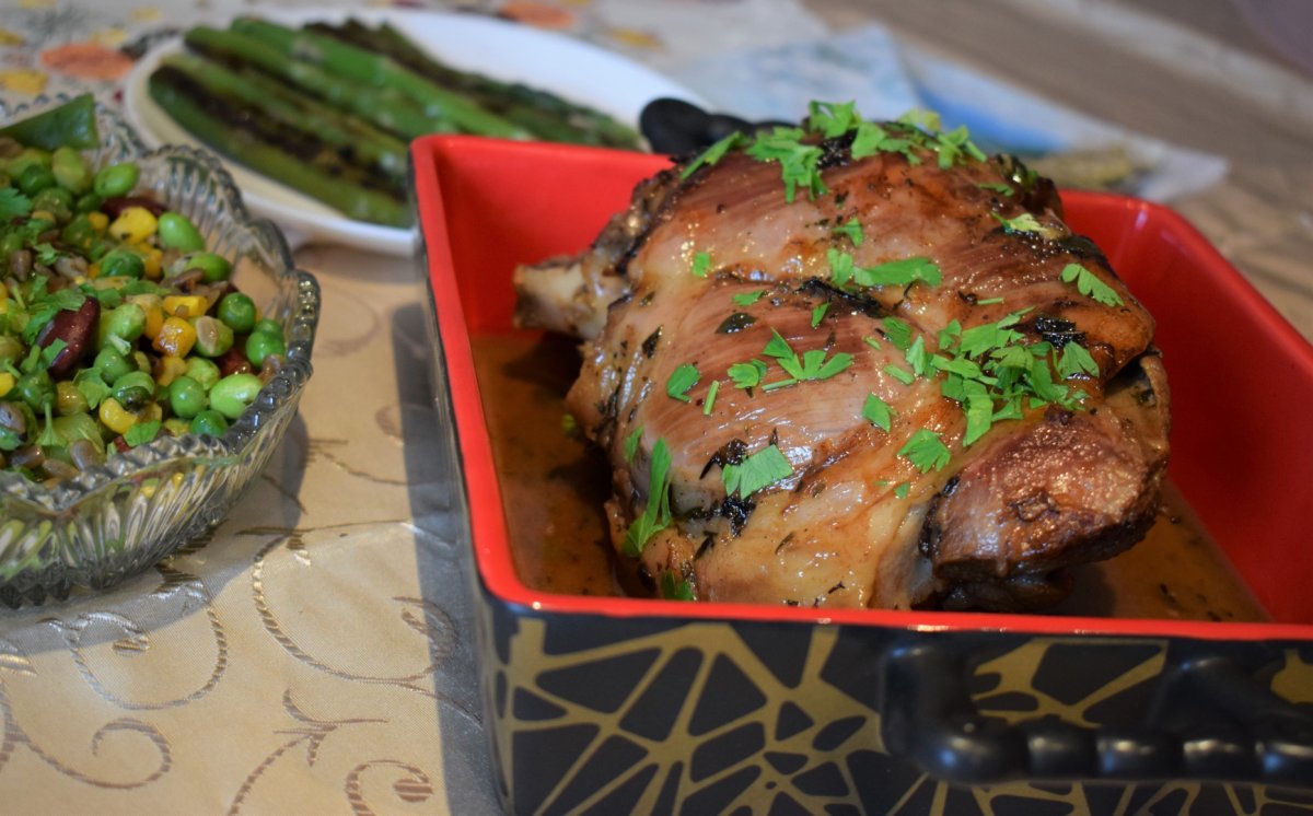 Cand carnea este rumenita frumos,turnam peste ea 150ml vin si o acoperim cu o folie de aluminiu si o punem in cuptorul incins la 200 grade pentru o ora. Timpul de coacere depinde si de cat de mare este bucata de carne si de cat de facuta va place sa o serviti (mai facuta sau mai in sange) .