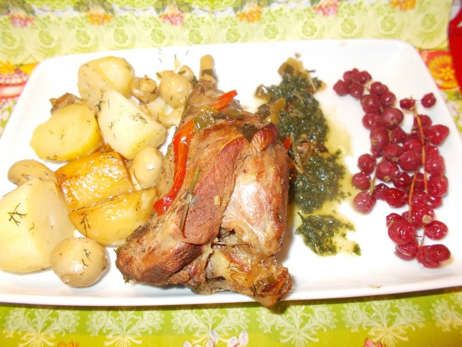 Putem servi sosul separat, intr-o sosiera sau rasfirat pe pulpa de miel.