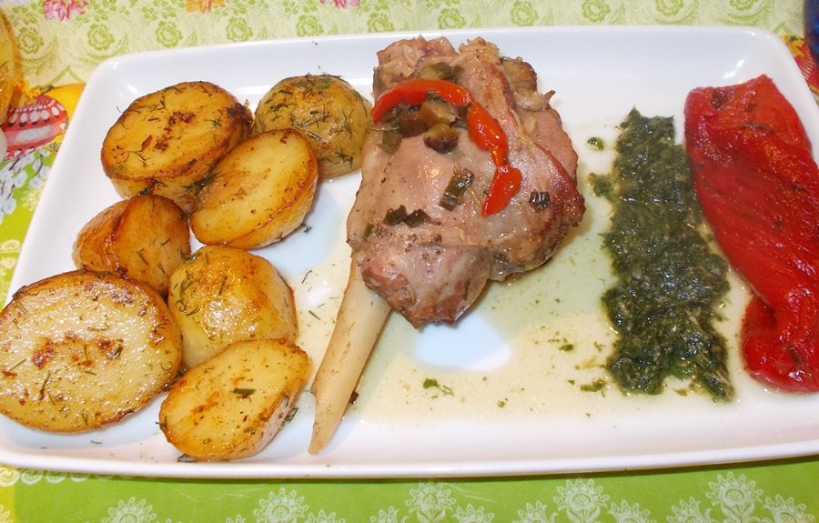 Putem servi sosul separat, intr-o sosiera, sau rasfirat pe pulpa de miel.