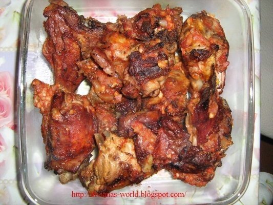 Se pune carnea de miel in tava cu ulei si se introduce la cuptor. Se lasa pana se albeste, dupa care se pune sare si piper si se intoarce pe cealalta parte si se procedeaza la fel.