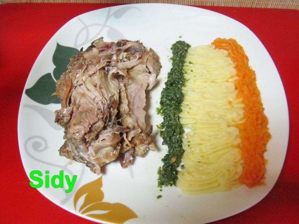 Preparam un piure din cartofii fierti, altul din morcovii fierti si altul din spanac.