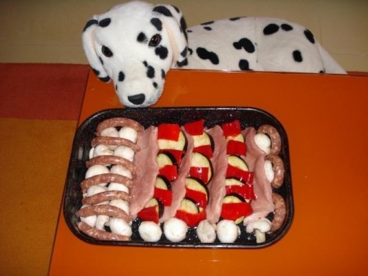 Asezam toate ingredientele in tava,punem ulei,condimente,o cana de apa si...gata,punem tava in cuptor
