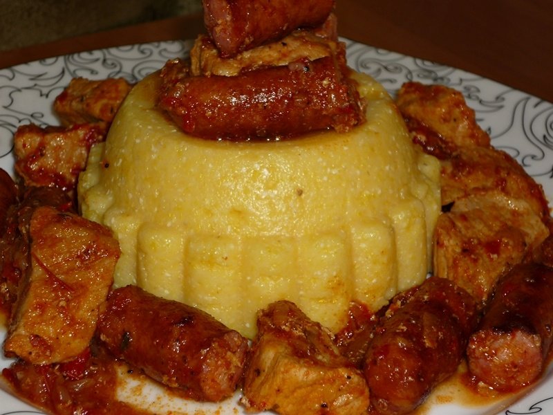 Dupa aproximativ o ora, aproape cand este gata mancarica, adaugam cana de vin, carnaciorii prajiti si mai lasam sa fiarba 5-10 minute.