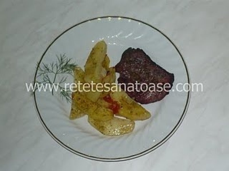 Retete culinareFriptura poate fi servita cu diverse garnituri sau simpla. Noi am optat pentru cartofi cu rozmarin la cuptor, a caror reteta o vom publica in curand.