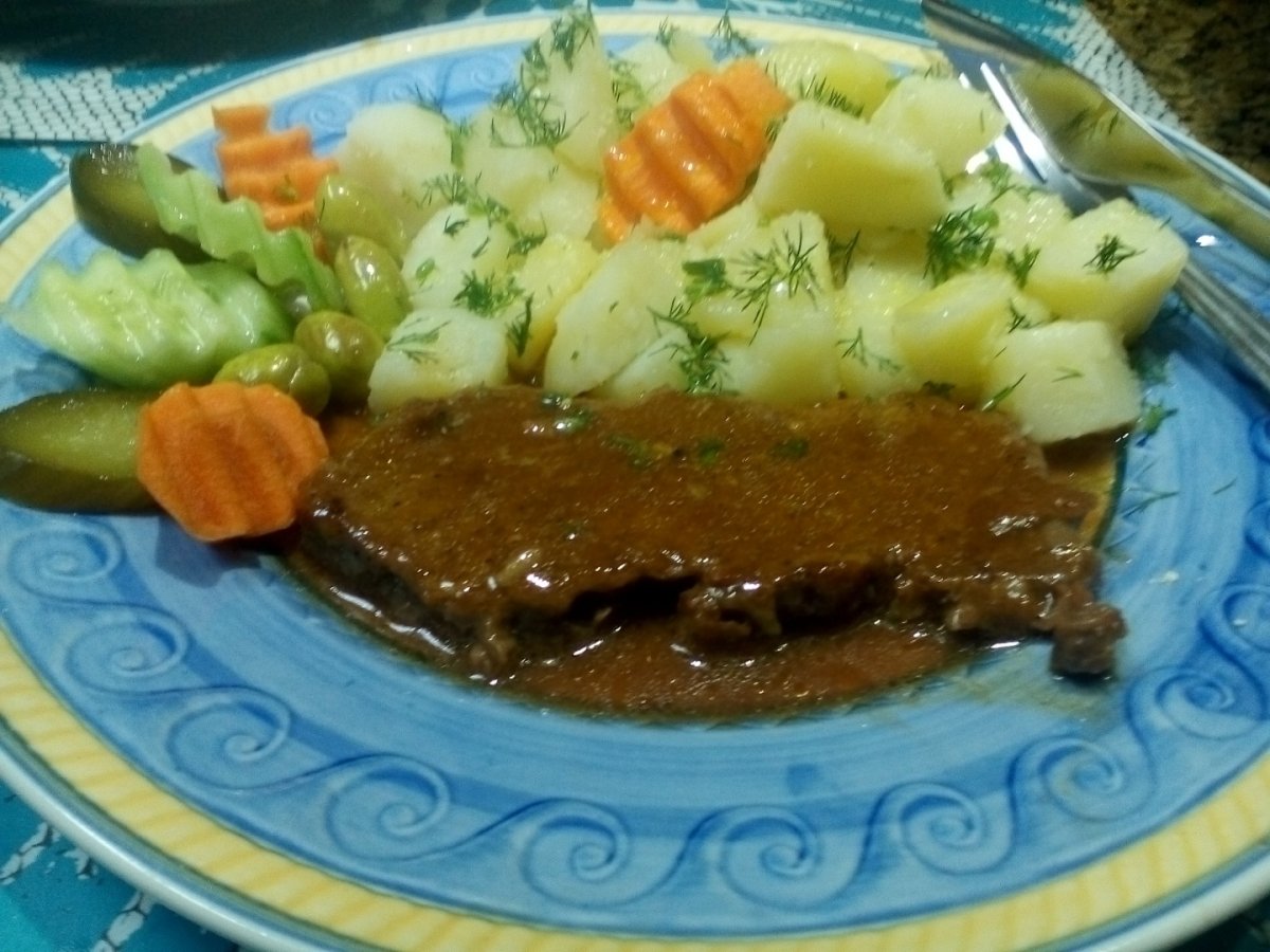 Culoarea trebuie sa fie un rosu-inchis, asta indicand faptul ca fibrele s-au detensionat si carnea s-a fragezit. Eu am ales 4 bucati mari si nu prea groase pe care le-am lasat in frigider cateva ore stropite cu lamaie, putin otet, sare si piper, asta ca sa fiu sigura ca friptura va iesi frageda si suculenta.